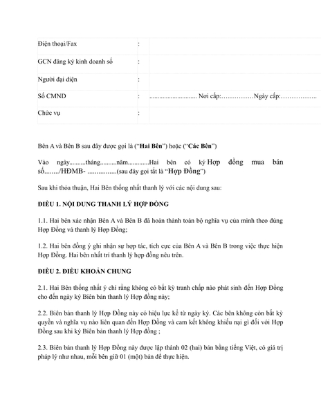 - Lý do chấm dứt (thanh lý) hợp đồng;