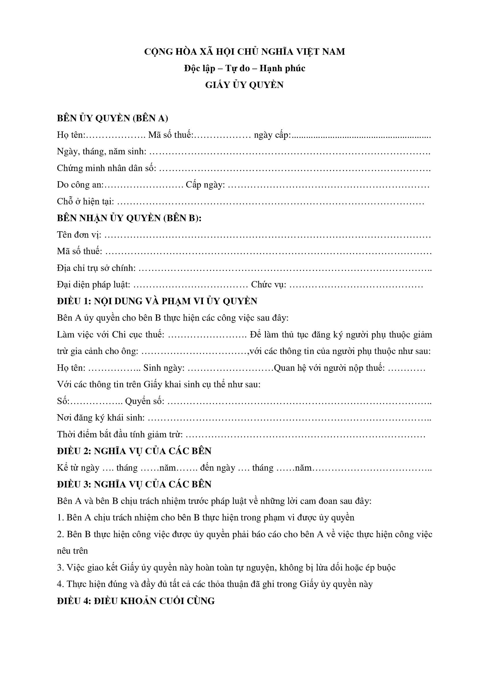 - Mẫu văn bản ủy quyền của cá nhân cho doanh nghiệp.
