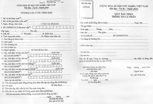 Bước 1: Mang theo Sổ hộ khẩu, điền vào Tờ khai Căn cước công dân – mẫu CC01 tại Đội Cảnh sát quản lý hành chính về trật tự xã hội, Công an cấp huyện.