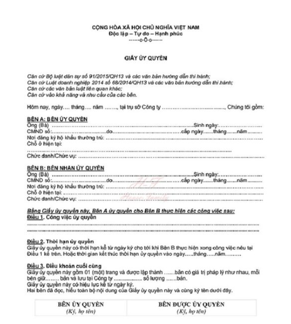 – Về hình thức: Hình thức của giấy ủy quyền phải theo thể thức của văn bản hành chính theo quy định của pháp luật.