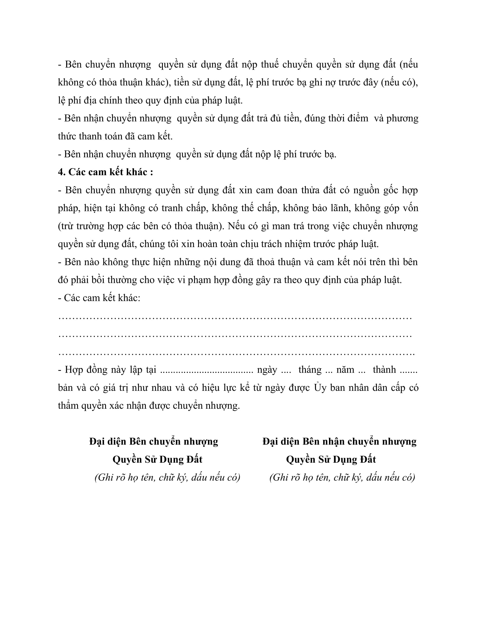 - Lời cam kết thông tin ghi trên hợp đồng là đúng sự thật