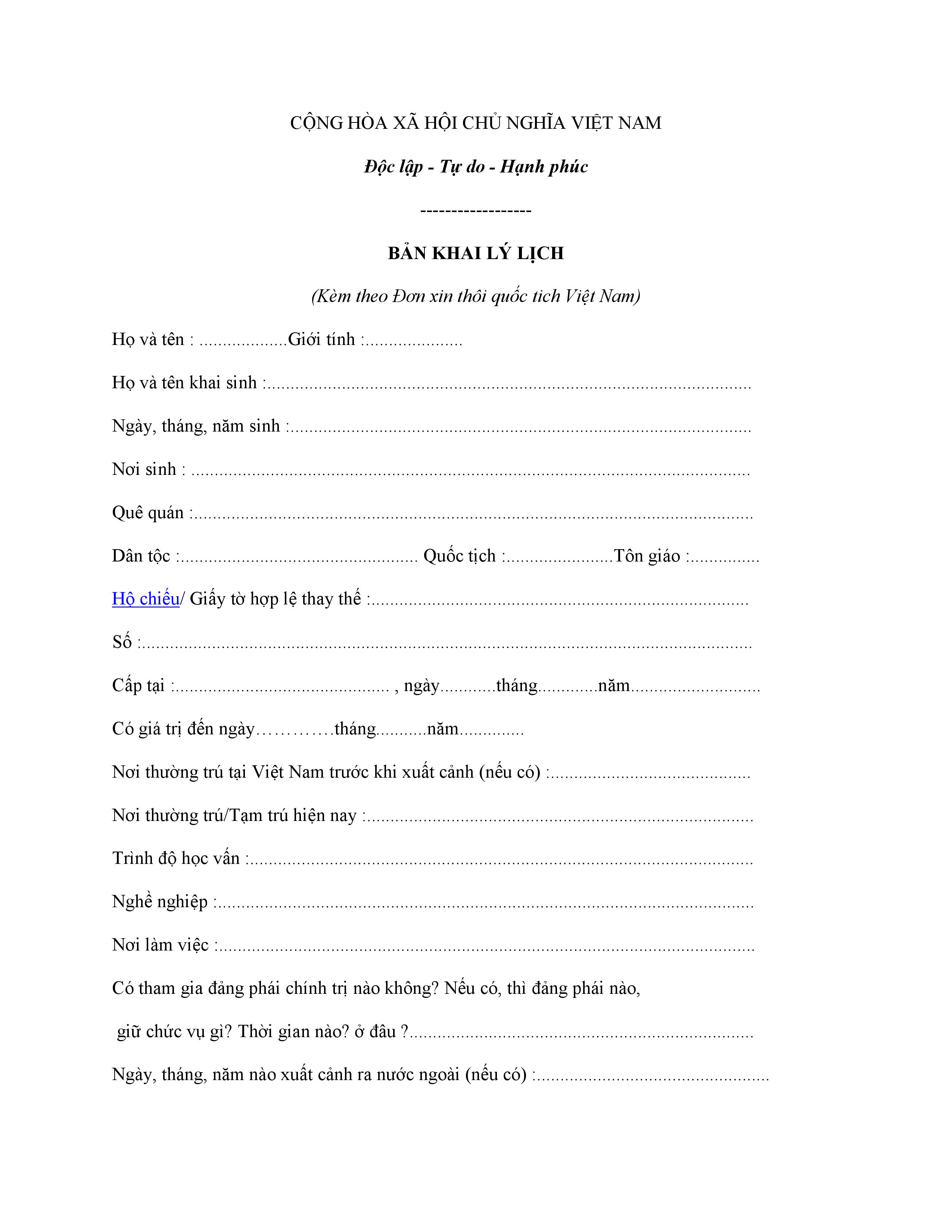 (Kèm theo Đơn xin thôi quốc tich Việt Nam)