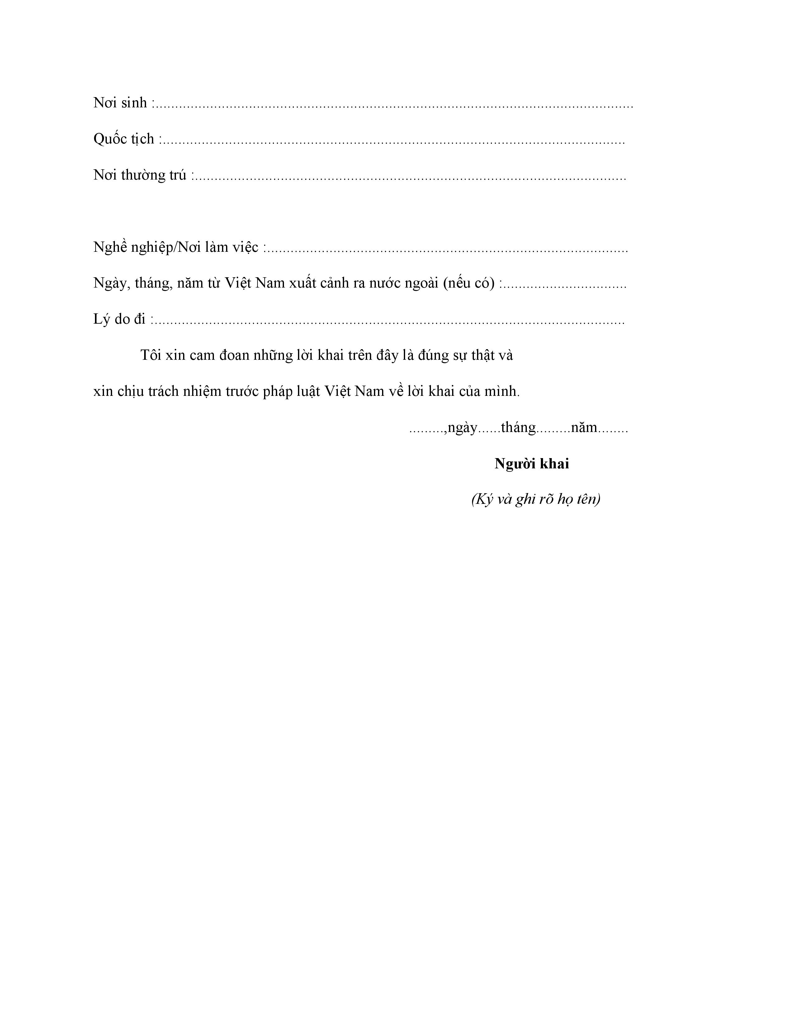 xin chịu trách nhiệm trước pháp luật Việt Nam về lời khai của mình.