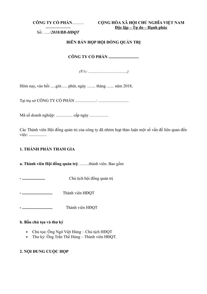 Mẫu biên bản họp hội đồng quản trị trong công ty