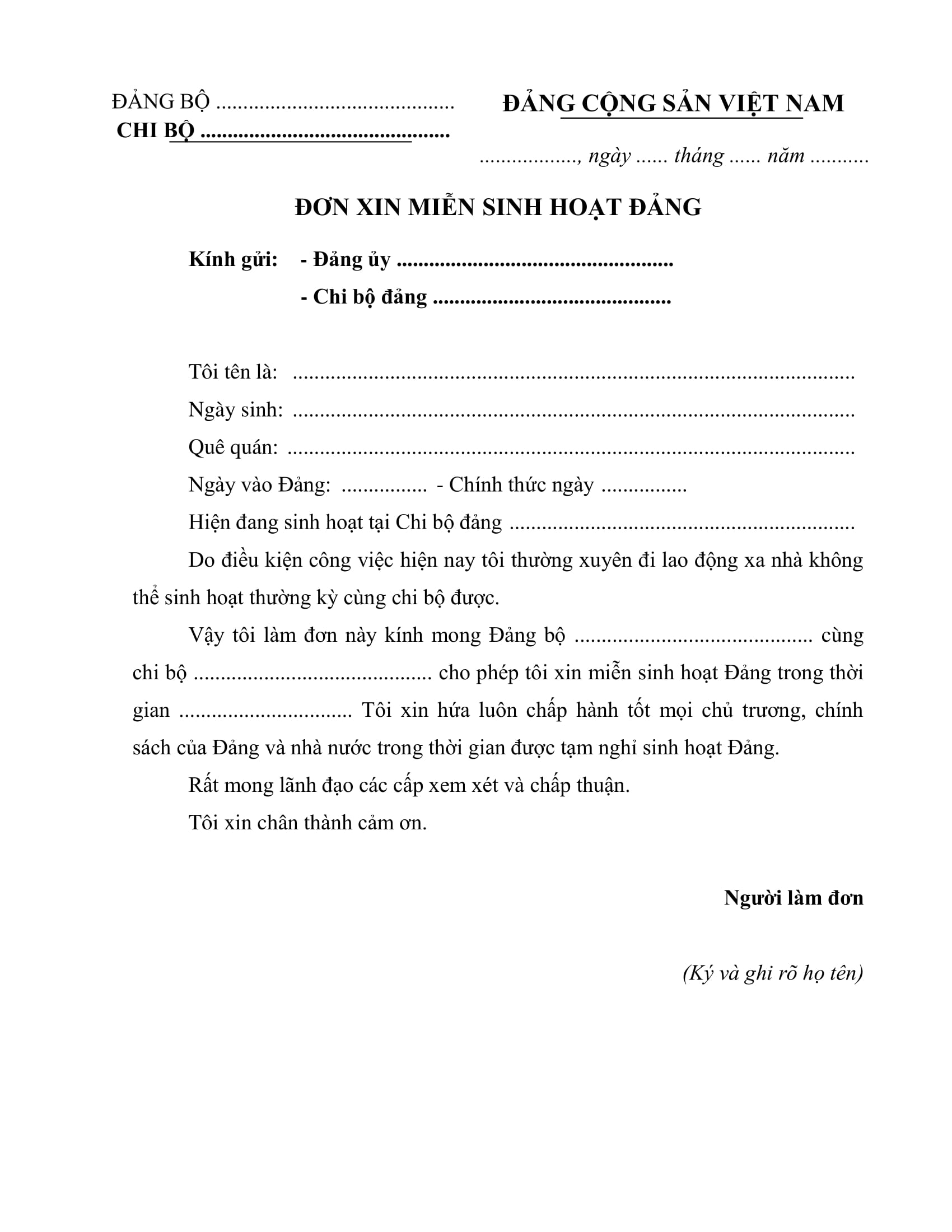 ĐƠN XIN MIỄN SINH HOẠT ĐẢNG