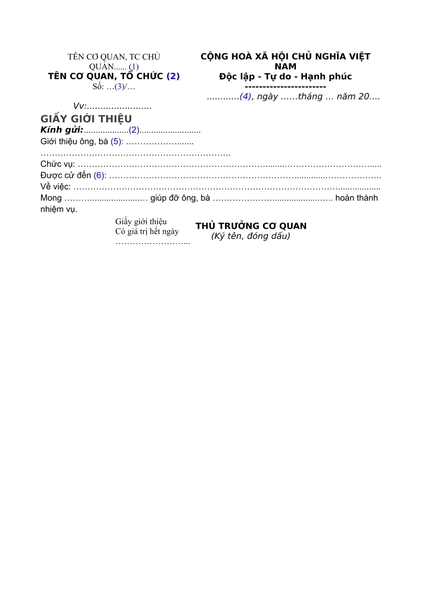 - Tên cơ quan, tổ chức ban hành văn bản (cấp giấy giới thiệu) hoặc người giới thiệu.