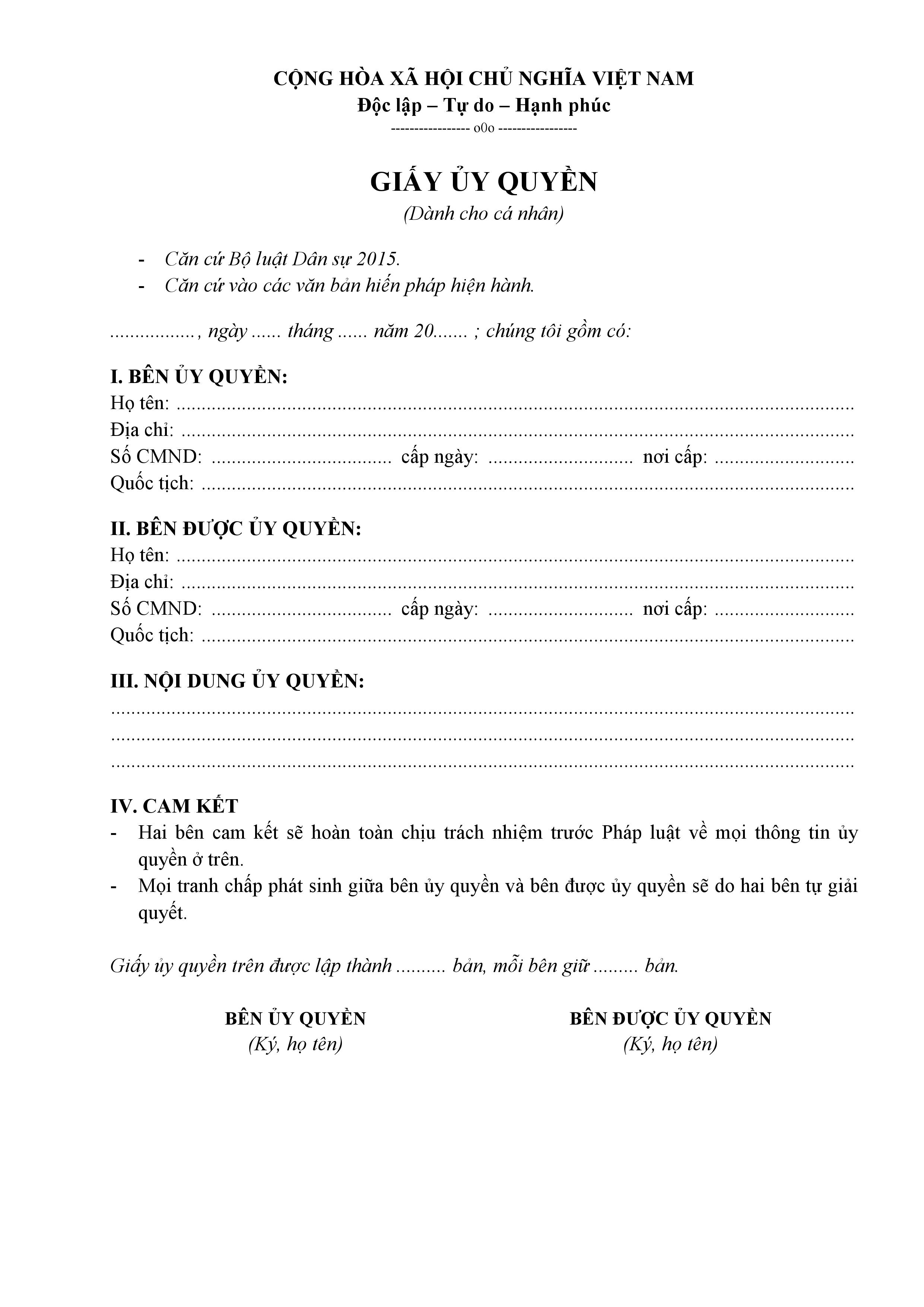 – Hai bên cam kết sẽ hoàn toàn chịu trách nhiệm trước Pháp luật về mọi thông tin ủy quyền ở trên.
