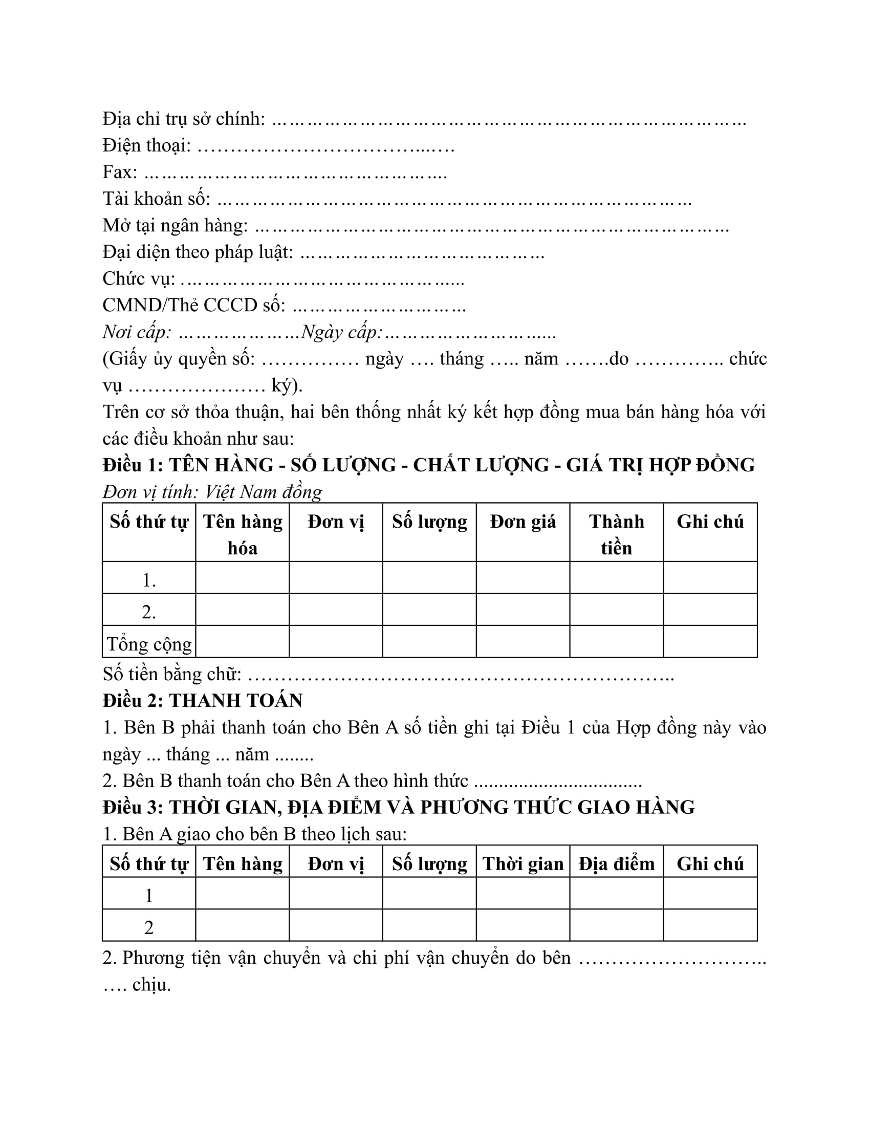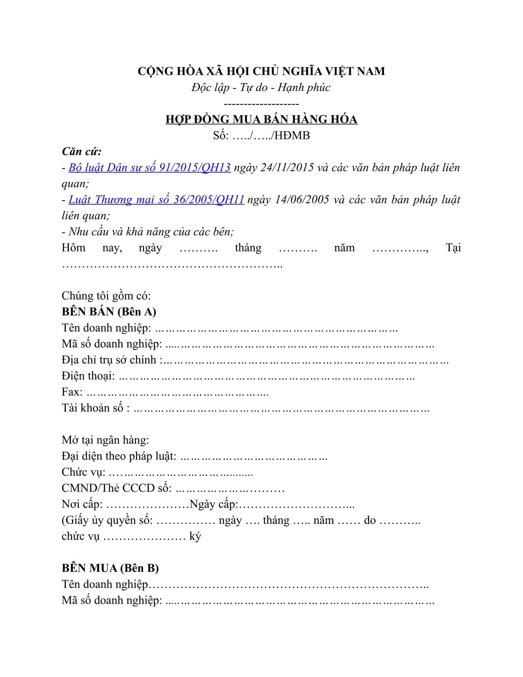 HỢP ĐỒNG MUA BÁN HÀNG HÓA