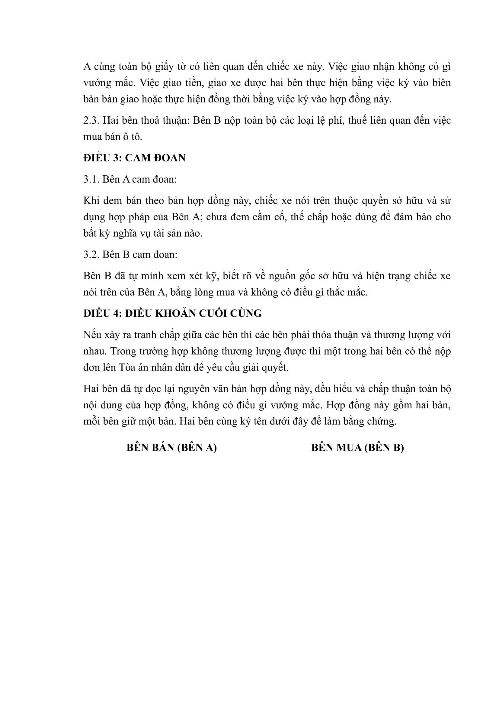 2.3. Hai bên thoả thuận: Bên B nộp toàn bộ các loại lệ phí, thuế liên quan đến việc mua bán xe.