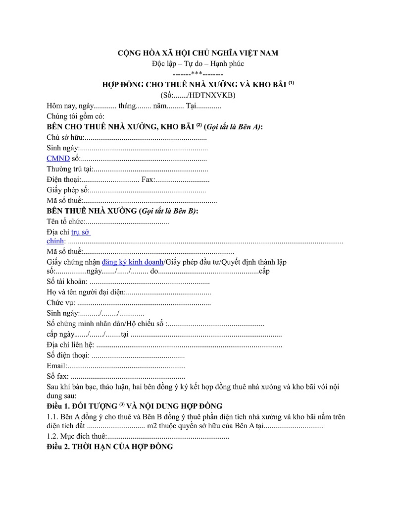 HỢP ĐỒNG CHO THUÊ NHÀ XƯỞNG VÀ KHO BÃI (1)