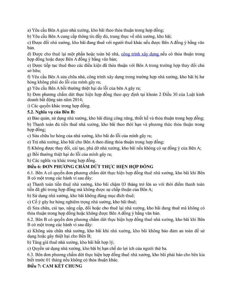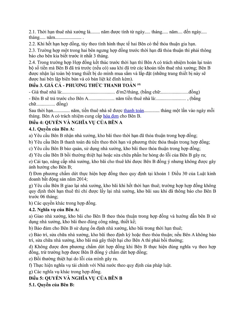 2. Mẫu hợp đồng thuê nhà xưởng, kho bãi