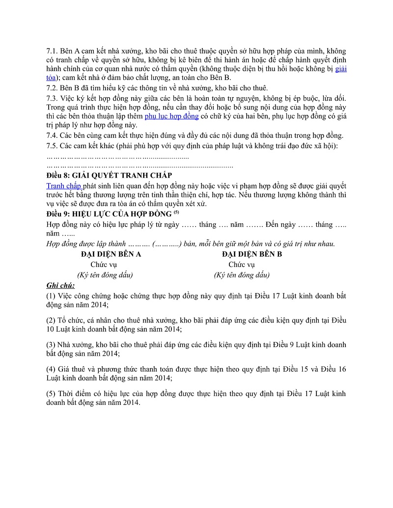 7.2. Bên B đã tìm hiểu kỹ các thông tin về nhà xưởng, kho bãi cho thuê.