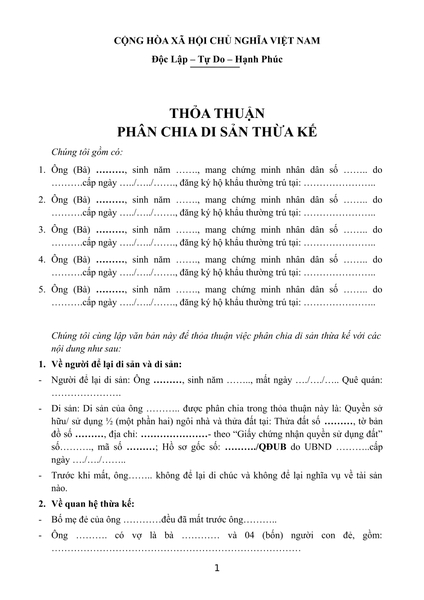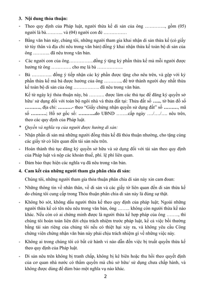 1.Mẫu văn bản chia di sản thừa kế