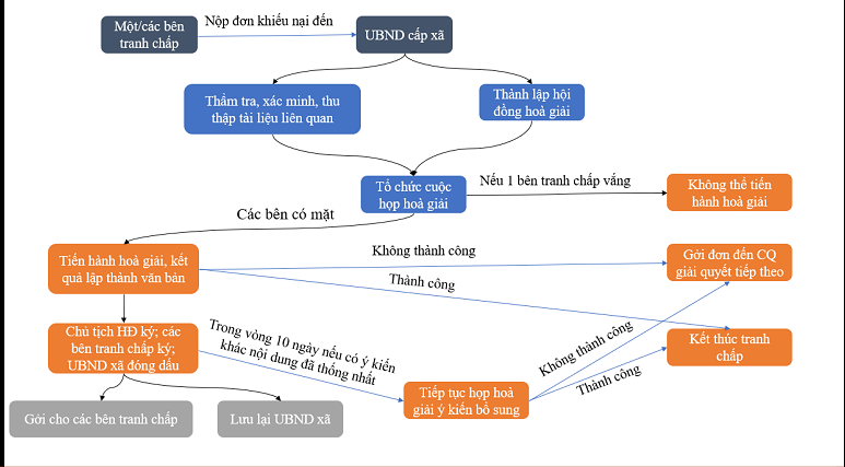Quy trình hoà giải tại UBND Xã các bạn tham khảo sơ đồ sau: