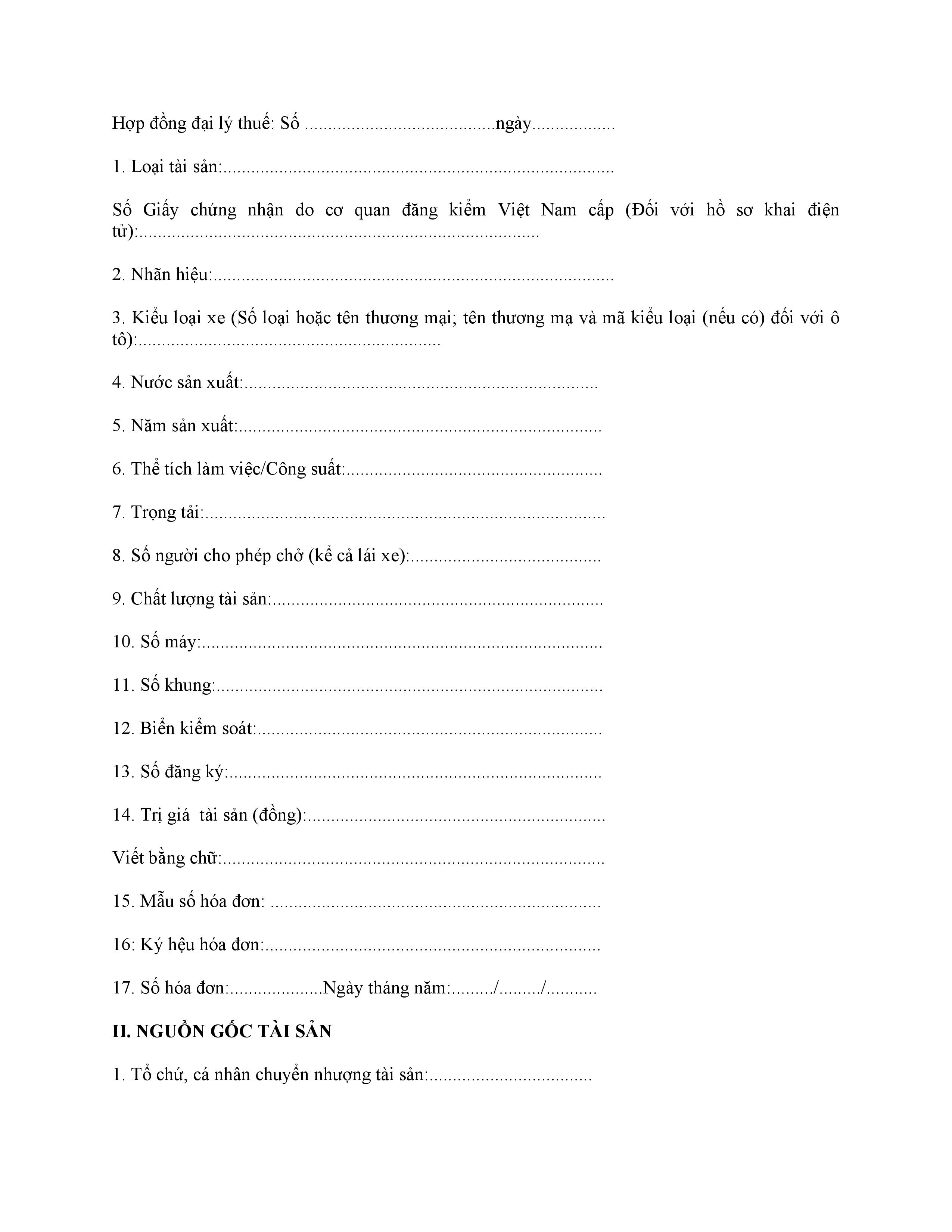 1. Trị giá tài sản tính lệ phí trước bạ (đồng):………………………………..