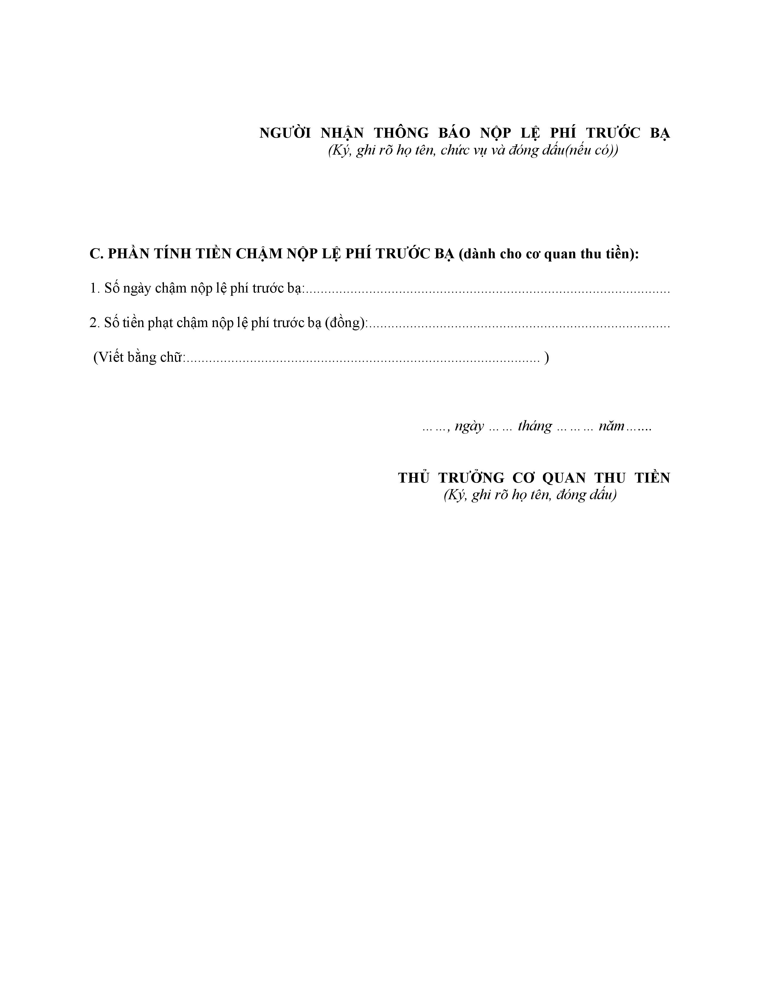 C. PHẦN TÍNH TIỀN CHẬM NỘP LỆ PHÍ TRƯỚC BẠ (dành cho cơ quan thu tiền):